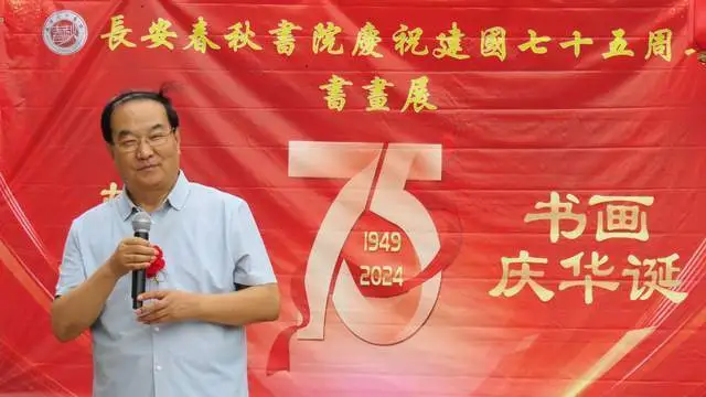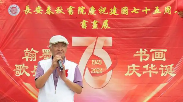 9月28日下午,长安春秋书院庆祝建国75周年书画展在西安植物园举行,蔡嘉励,卫双良,柏小民,刁玉祥等书画界名流以及书画爱好者共100多人参加此次活动。