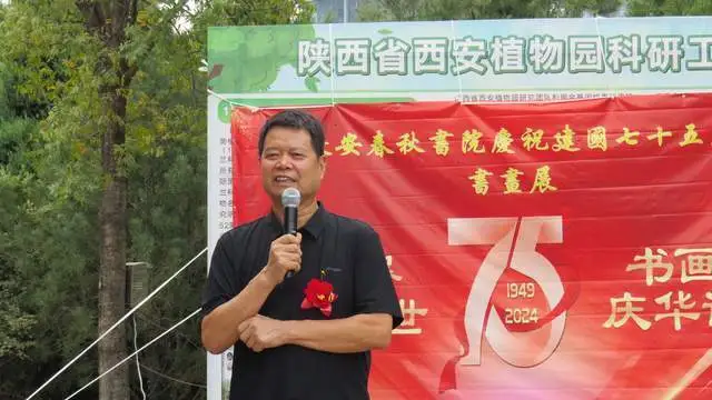 9月28日下午,长安春秋书院庆祝建国75周年书画展在西安植物园举行,蔡嘉励,卫双良,柏小民,刁玉祥等书画界名流以及书画爱好者共100多人参加此次活动。